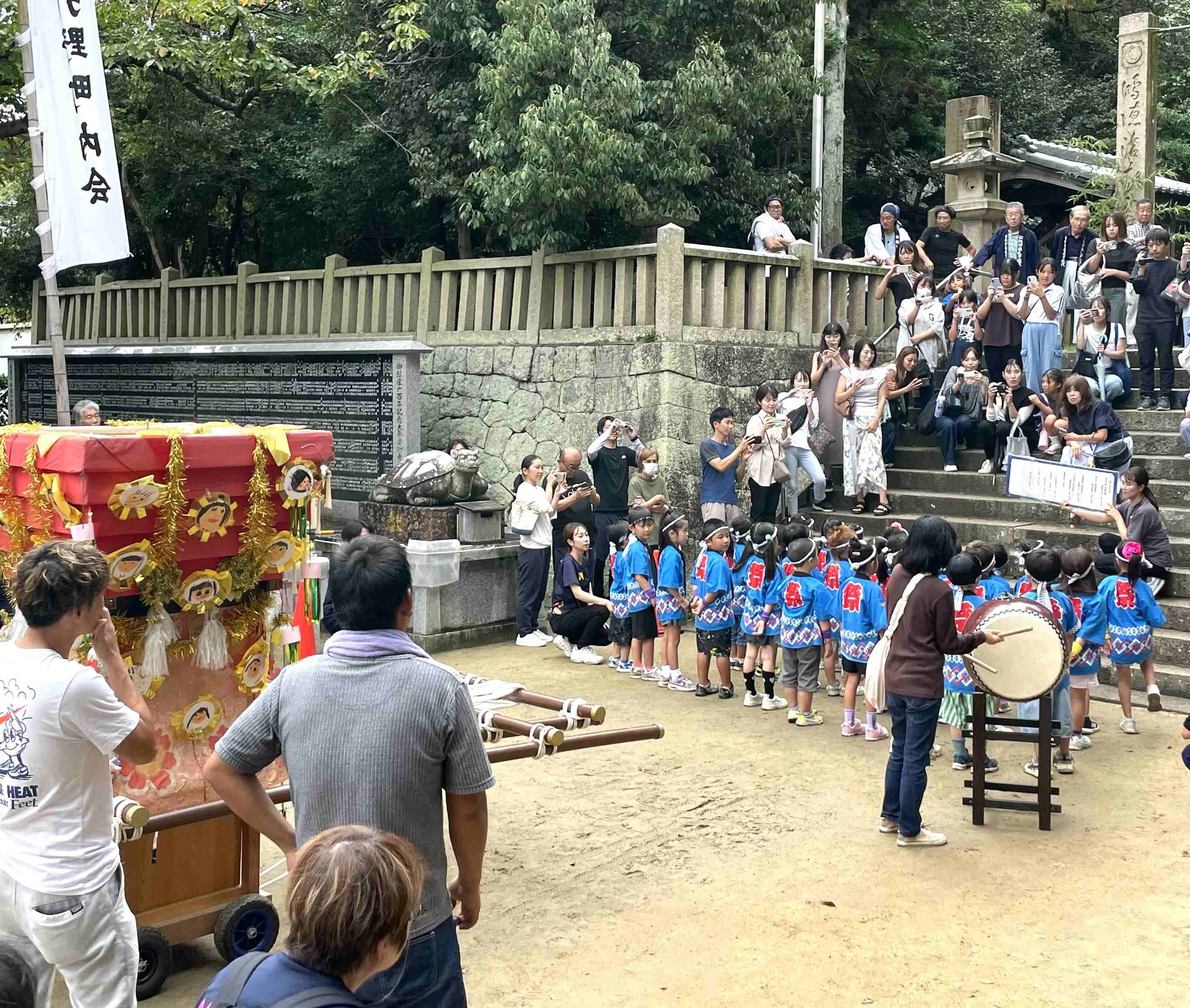 毎年欠かさずご参加いただいている仮屋保育所の年長組の皆さんが、今年も元気に宮入りと囃子歌を奉納して下さいました!