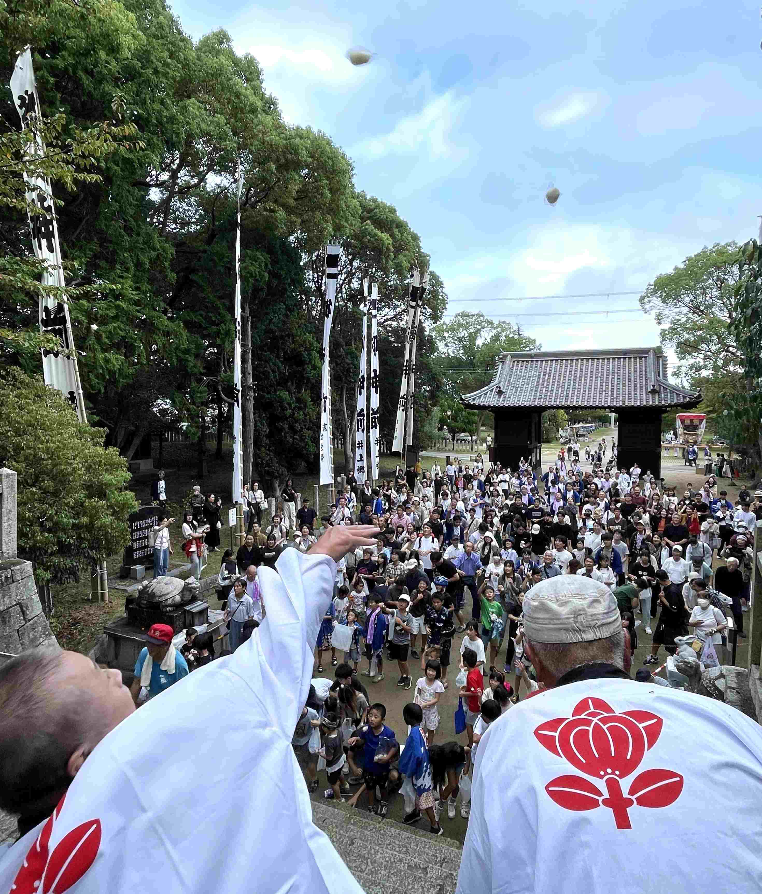 例大祭のおさがりとして餅と共に氏神様の御神徳をいただこうと先を争って餅を集めておられましたが、お子様を中心に怪我がないよう安全対策に注力しましたので、無事終える事ができ何よりでした。