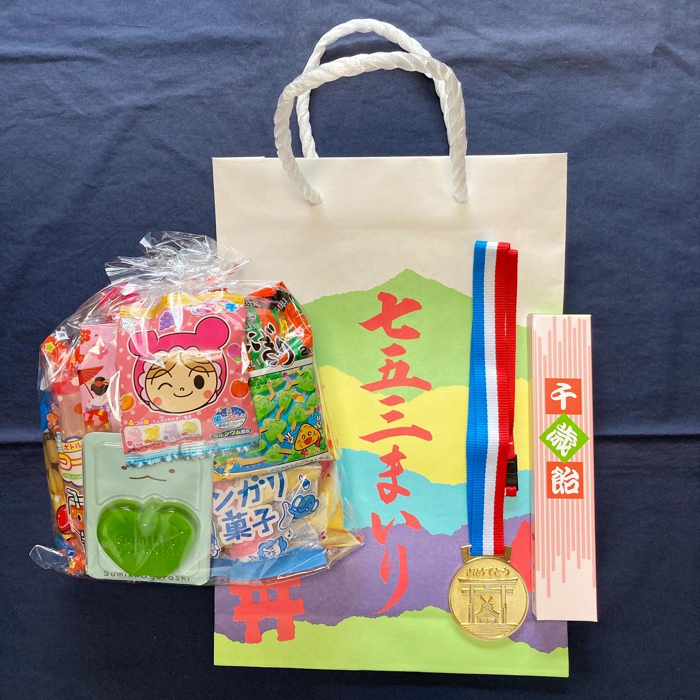 これまでのお子様のご成長への感謝と今後のご多幸を祈念し、千歳飴や例年大好評のお菓子セット、記念メダル等のお品をご用意しております。
