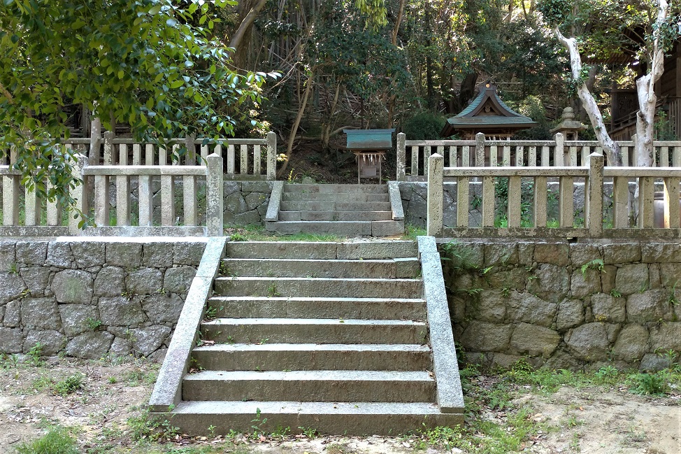 台風被害で破損した玉垣の修理工事が終わりました 平成30年8月24日に淡路島に襲来した台風20号の暴風の為倒壊した御神木によって、松帆神社の摂社(小宮さん)に至る南側の階段脇の玉垣も破損いたしましたが、同時に破損した拝殿屋根の修理を優先した為復旧が遅れておりました。 令和2年度に入り修復作業の予算目途がついた為、4月中旬以降 修理を進めておりましたが、4月末に修理が完了しましたのでご報告いたします。 階段の傾き等についても同時に手直しいたしましたので、安心して小宮さんにお詣りいただければ幸いです。