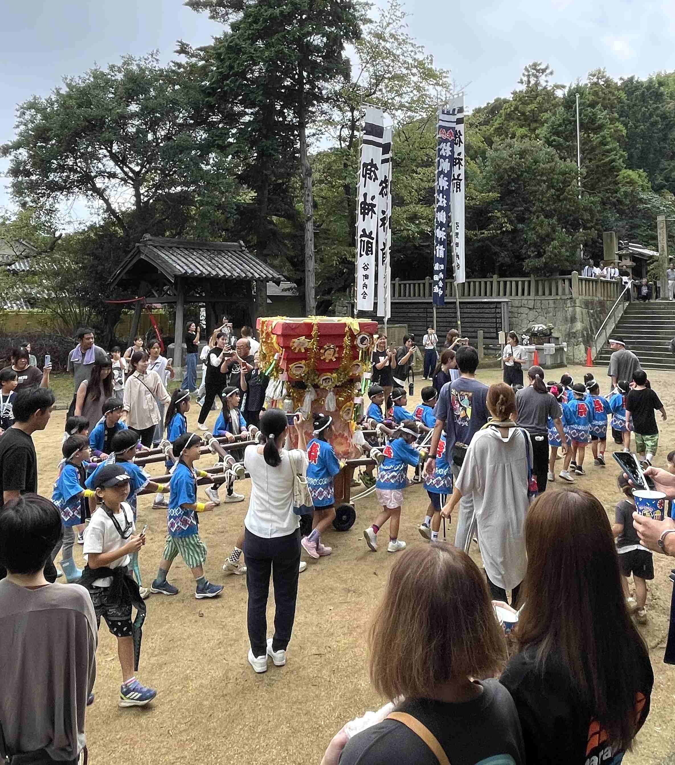 毎年欠かさずご参加いただいている仮屋保育所の年長組の皆さんが、今年も元気に宮入りと囃子歌を奉納して下さいました!