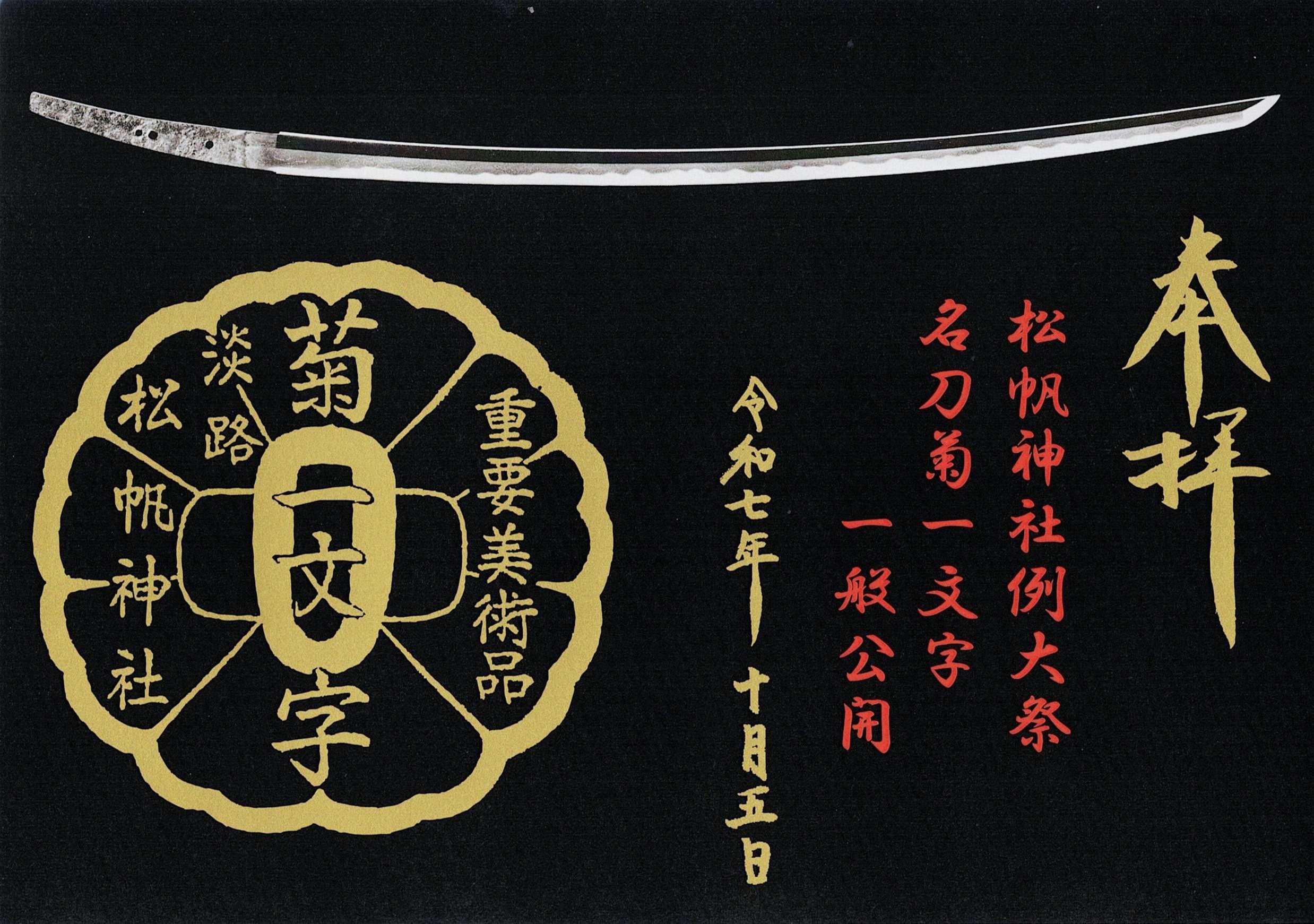 去る10月5日(日)に恒例の松帆神社例大祭(秋祭り)を執り行い、重要美術品の社宝・名刀「菊一文字」の一般公開も実施いたしました。